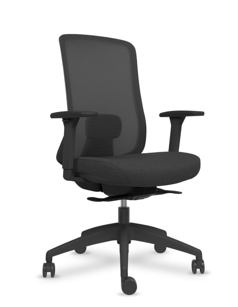 Lando ofrece apoyo lumbar regulable, asiento de alta densidad y brazos 3D + anchura para una ergonomía completa. Su mecanismo Syncro autopesante adapta la tensión al peso del usuario, e incorpora slider para ajustar la profundidad del asiento. La base piramidal de nylon y las ruedas de perfil medio garantizan estabilidad y un desplazamiento fluido